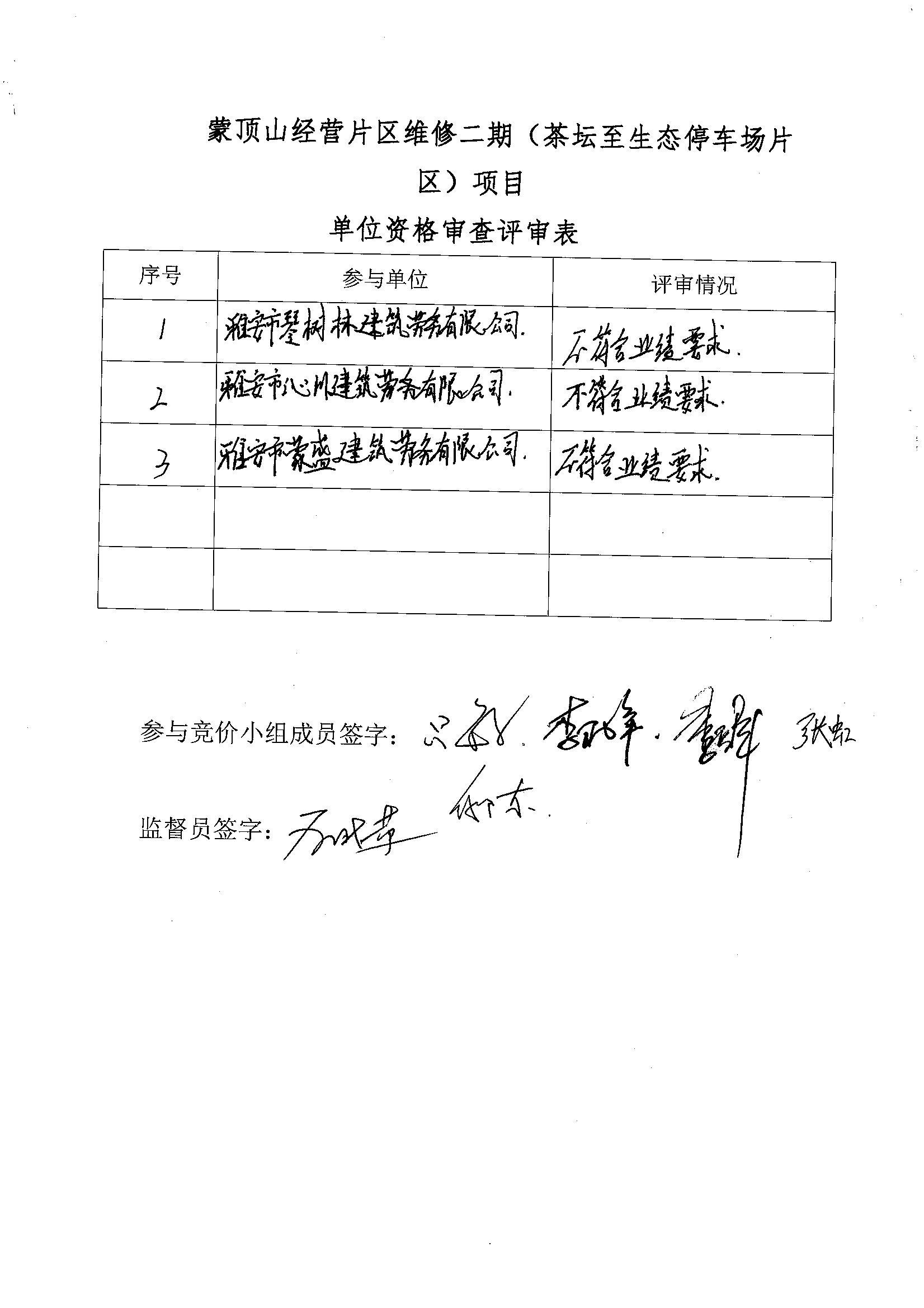 流標(biāo)蒙頂山經(jīng)營片區(qū)維修二期(茶壇至生態(tài)停車場(chǎng)片區(qū))項(xiàng)目流標(biāo)公告
