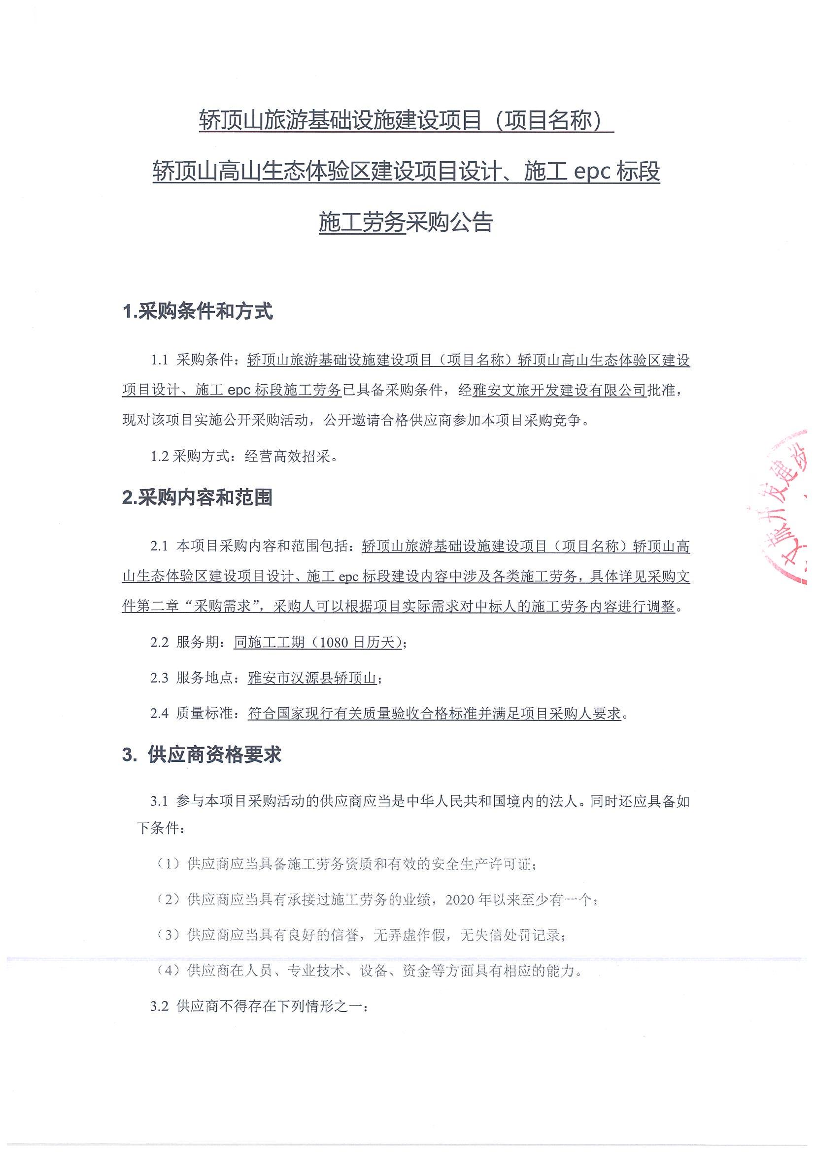 轎頂山高山生態(tài)體驗(yàn)區(qū)建設(shè)項(xiàng)目設(shè)計(jì)、施工epc標(biāo)段施工勞務(wù)采購公告