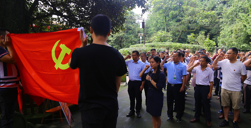 活動中,城鄉(xiāng)黨員步行攀登蒙頂山,尋訪古茶樹、探訪甘露井、瀏覽皇茶園、拜謁茶神,了解家鄉(xiāng)、認識雅安。在紅軍百丈關(guān)戰(zhàn)役紀(jì)念館外,由文旅公司支部書記殷麗華帶領(lǐng)90多名黨員重溫入黨誓詞,黨員干部鏗鏘的語調(diào),誠摯的心聲,既是莊嚴(yán)的承諾,也是每一名黨員的奮斗目標(biāo)。